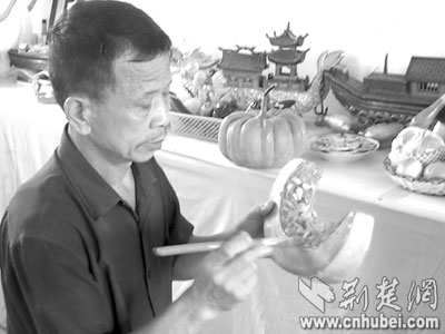 “老人家,這確實(shí)是用泡沫雕成的。”人群中,走出一個(gè)人。他是這個(gè)“冒牌貨”的生產(chǎn)者,特意帶著自己的“作品”,來菜場一顯身手的。
