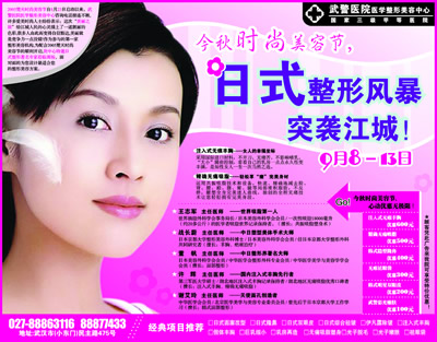 今日起,對(duì)光子嫩膚、割雙眼皮、隆鼻、除皺、豐胸、脫毛、文唇、美齒等時(shí)尚美容感興趣的讀者,可撥打電話027-86772101,報(bào)名參加“美麗之旅”,本集團(tuán)將組織專家篩選之后,為入圍讀者量身定做各種免費(fèi)美容體驗(yàn)項(xiàng)目;同時(shí),想詳細(xì)了解各種美容過程的讀者,也可報(bào)名參加,現(xiàn)場觀摩。報(bào)名活動(dòng)將持續(xù)到本周五。