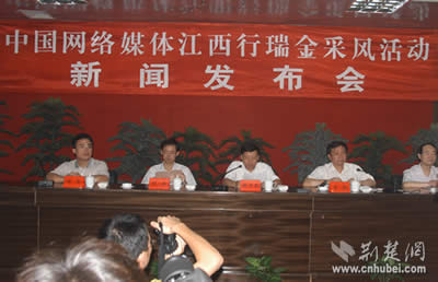 荊楚網(wǎng)消息 記者姚啟慧報(bào)道:12日晚,第二屆中國網(wǎng)絡(luò)媒體江西行采訪團(tuán)抵達(dá)共和國搖籃瑞金。13日上午,瑞金市舉行隆重的記者招待會,瑞金市委書記肖毅親自向采訪團(tuán)記者推介紅色故都瑞金,市長楊中茂主持會議。
