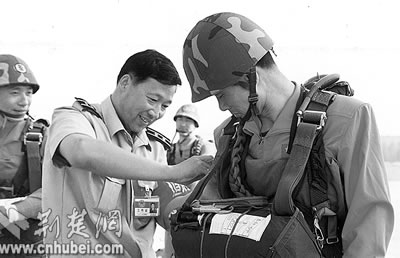 在“神舟”六號(hào)發(fā)射前夕,記者來(lái)到駐鄂空降兵某部軍營(yíng),采訪了曾任聶海勝傘訓(xùn)教官的空降兵某部研究所所長(zhǎng)李振波。