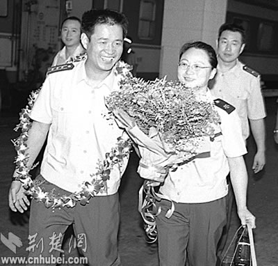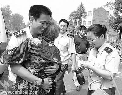 Nie Haisheng embraced with his mother on home leave in August 2004.