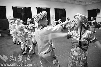 這是宜昌市西陵區(qū)窯灣鄉(xiāng)的農(nóng)民正在緊張排練巴山舞的情景。他們是經(jīng)過中南六省相關(guān)部門聯(lián)合商定,代表中南六省在本月福建省泉州市,參加中國農(nóng)民體協(xié)和國家體育總局舉辦的“全國地方特色體育展示”活動。