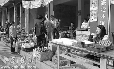 村民們確保為建設(shè)者們提供充足的鮮肉和蔬菜供應(yīng)。本報(bào)記者楊平攝
