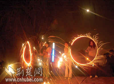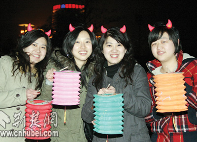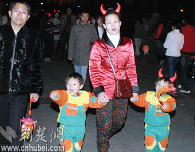 中山公園里,一對對情侶紛紛登上湖中的小舟,在燭光中許下愛情的誓言。25歲游客小敏舉著燈籠,偎依在男友的懷里,羞澀地笑著告訴記者:“今天我同意嫁給他了,這是我們金豬年最大的喜慶。”