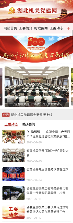 建網(wǎng)15年來,湖北機關(guān)黨建網(wǎng)總體運行良好,傳播力、影響力和公信力逐年提升,成為全省機關(guān)黨建工作的窗口,交流黨建工作的重要陣地。省委直屬機關(guān)工委歷來高度重視湖北機關(guān)黨建網(wǎng)陣地建設(shè),為了更加符合新媒體時代發(fā)展趨勢,更加貼近黨員干部的用網(wǎng)需求,今年聯(lián)合荊楚網(wǎng)技術(shù)團隊,對網(wǎng)站的頁面風格、欄目設(shè)置、選題內(nèi)容等進行優(yōu)化,并推出手機版,實現(xiàn)了一鍵帶圖分享、字體自由調(diào)節(jié),欄目更加科學、界面更加大氣、訪問更加便捷、閱讀更加流暢。