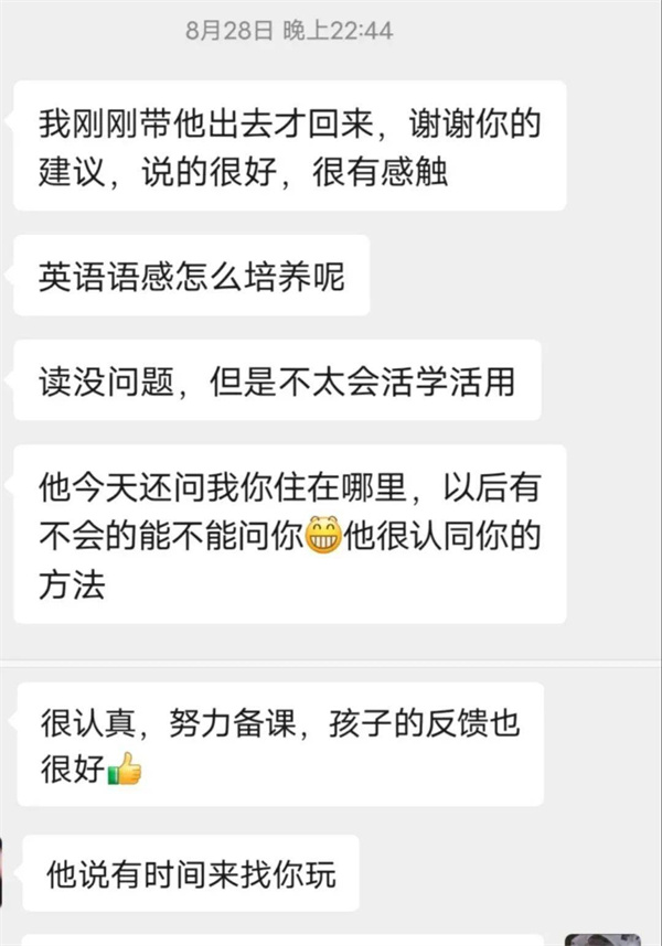 2021年的第一次線上志愿輔導(dǎo)在我的激動、欣喜、緊張交錯之中開始了。第一步也是最重要的一步:和家長進行交流與溝通。說實話,我的心里還是非常忐忑的:害怕家長不回復(fù)消息,害怕不能很好地了解小朋友的學(xué)習(xí)狀況。但其實邁出溝通的第一步之后,后面的對話就很自然了,并沒有想象中的那么困難和緊張。而且很幸運的是,家長很配合我們的輔導(dǎo)活動,我的心里瞬間就放松了不少,自信心也莫名大增!被叫老師,真是很久違的感覺,令我成就感倍增,獲得了家長的稱贊也讓我很開心。而我本身也很喜歡數(shù)學(xué),希望我的興趣可以感染到小朋友,讓她也能喜歡數(shù)學(xué)。也希望通過基本的閱讀寫作教學(xué),讓她能夠提升自己。