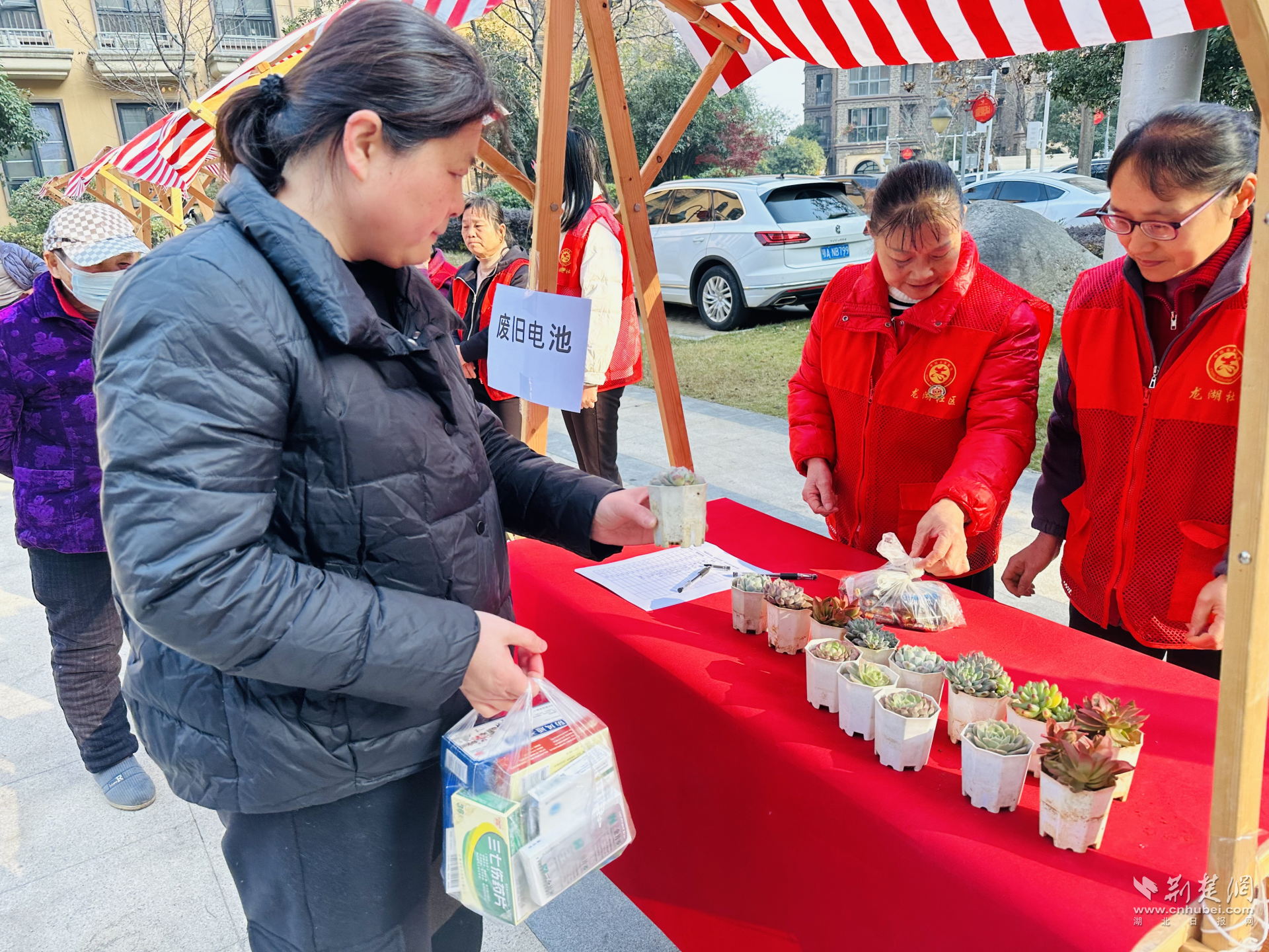 活動(dòng)現(xiàn)場(chǎng),社區(qū)工作人員與共建單位志愿者提前布置好兌換區(qū),多肉、綠蘿、長(zhǎng)壽花等綠植鮮嫩欲滴,垃圾袋、抹布等日用品擺放整齊,吸引了不少居民駐足咨詢。“家里攢了不少?gòu)U舊電池,一直不知道怎么處理,今天終于派上用場(chǎng)了!”居民張阿姨提著一袋子舊電池來(lái)到兌換點(diǎn),經(jīng)過(guò)志愿者清點(diǎn)登記后,順利換得一盆長(zhǎng)勢(shì)喜人的綠蘿。
