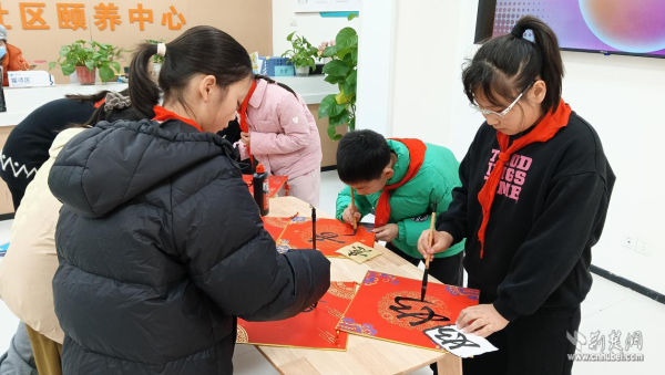 社區(qū)黨委充分發(fā)揮核心引領(lǐng)作用,積極統(tǒng)籌資源、搭建共建平臺(tái)?;顒?dòng)現(xiàn)場(chǎng)洋溢著溫馨祥和的節(jié)日氛圍。未來(lái)實(shí)驗(yàn)小學(xué)的孩子們帶來(lái)精心編排的文藝節(jié)目,充滿朝氣的歌曲、舞蹈與詩(shī)朗誦為頤養(yǎng)中心注入了青春活力,贏得老人們陣陣掌聲。學(xué)生志愿者還與武昌區(qū)人大代表、未來(lái)實(shí)驗(yàn)小學(xué)校長(zhǎng)鄧徐念一起揮毫潑墨,書(shū)寫(xiě)“?!弊峙c新春寄語(yǔ),在筆墨間傳遞對(duì)長(zhǎng)者最真摯的祝福。