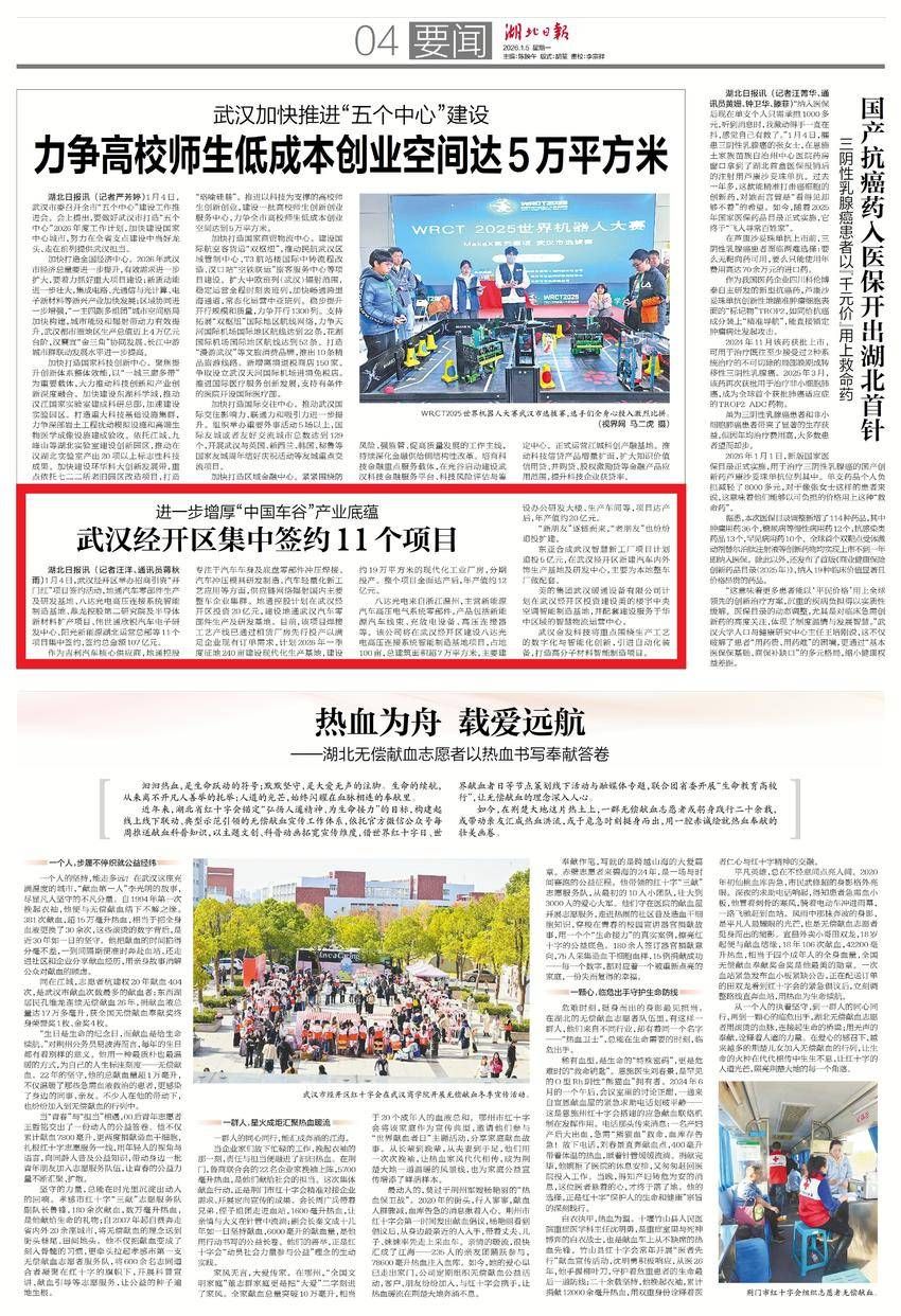 1月5日,湖北日?qǐng)?bào)要聞版報(bào)道:進(jìn)一步增厚“中國(guó)車谷”產(chǎn)業(yè)底蘊(yùn) 武漢經(jīng)開(kāi)區(qū)集中簽約11個(gè)項(xiàng)目