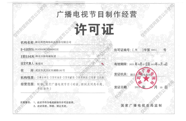 廣播電視節(jié)目制作經(jīng)營許可證(鄂)字第00011號