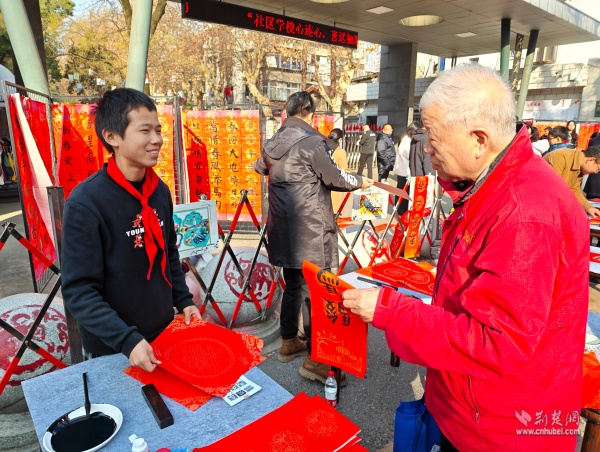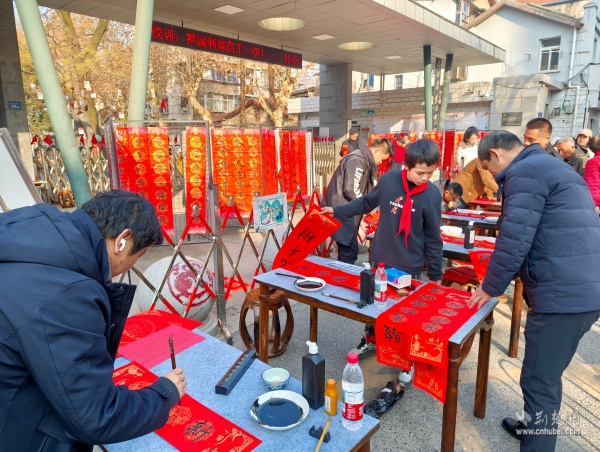 荊楚網(wǎng)(湖北日?qǐng)?bào)網(wǎng))訊(通訊員 胡雅菲 許小玲)為弘揚(yáng)中華優(yōu)秀傳統(tǒng)文化,凝聚區(qū)域共建合力,助力武昌區(qū)創(chuàng)建“中國(guó)書(shū)法之鄉(xiāng)”,1月15日上午,由湖北省教育學(xué)會(huì)書(shū)法教育專(zhuān)業(yè)委員會(huì)主辦、武昌區(qū)黃鶴樓街道花堤社區(qū)聯(lián)合共建單位湖北省武昌實(shí)驗(yàn)小學(xué)承辦的“社區(qū)學(xué)校心連心,喜送福聯(lián)迎新春”公益活動(dòng),在實(shí)驗(yàn)小學(xué)門(mén)口拉開(kāi)帷幕。