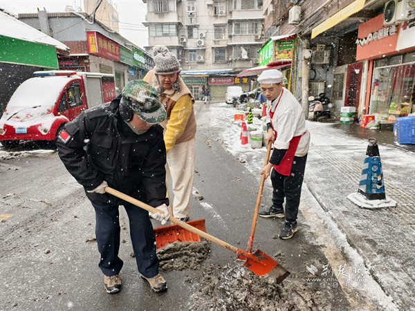 荊楚網(wǎng)(湖北日報(bào)網(wǎng))訊(通訊員 熊焱焱)1月20日,武漢迎來冬日首場降雪,面對降雪帶來的道路積雪和結(jié)冰風(fēng)險(xiǎn),糧道街道迅速響應(yīng)、周密部署,組織多方力量晝夜奮戰(zhàn),全力保障轄區(qū)主次干道及背街小巷暢通無阻,守護(hù)居民出行安全。從撒鹽除冰到全員掃雪,從商戶自發(fā)參與到網(wǎng)格員暖心幫扶,一幕幕守望相助的場景在寒冬中傳遞著溫暖。
