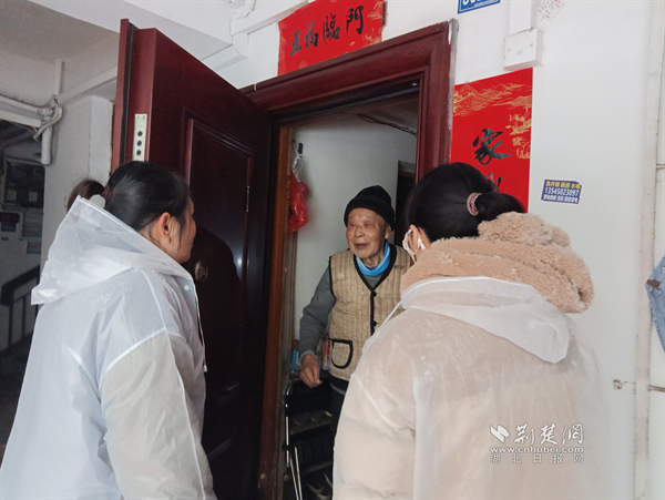 降雪路滑,糧道街道各社區(qū)心系轄區(qū)內(nèi)空巢老人、孤寡老人和殘疾人等特殊群體家庭,迅速組織網(wǎng)格員開展“敲門行動”。花園山社區(qū)網(wǎng)格員在上門看望獨(dú)居老人途中,偶遇特扶對象鄧奶奶正小心翼翼地在雪中前行?!班嚹棠蹋c(diǎn)走,這雪剛下,路面有點(diǎn)滑,我扶著您?!本W(wǎng)格員立即上前攙扶,邁著穩(wěn)健的步伐將其護(hù)送回家。進(jìn)屋后,她反復(fù)叮囑老人:“雪天盡量減少外出,若有采購需求隨時(shí)聯(lián)系我們代買,生活上遇到任何困難,第一時(shí)間向社區(qū)反映?!币痪渚涠?,一聲聲關(guān)懷,讓寒冷的雪天暖意融融。