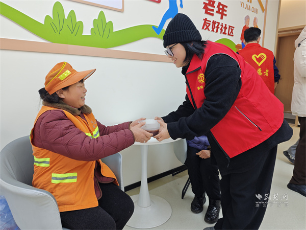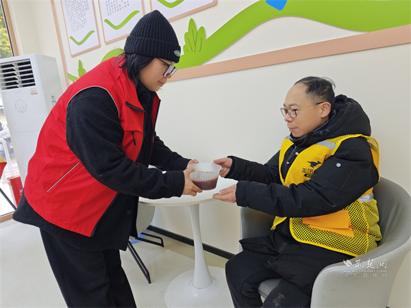 為戶(hù)外工作者送上臘八粥。 通訊員供圖