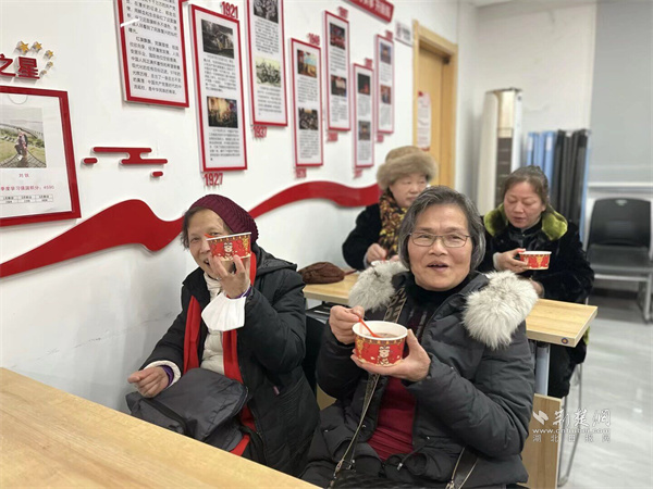 轄區(qū)居民細(xì)細(xì)品嘗臘八粥。 通訊員供圖