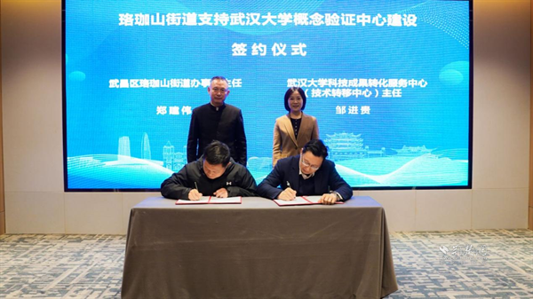 武昌區(qū)珞珈山街道與武漢大學(xué)科技成果轉(zhuǎn)化服務(wù)中心現(xiàn)場(chǎng)簽約。 通訊員供圖