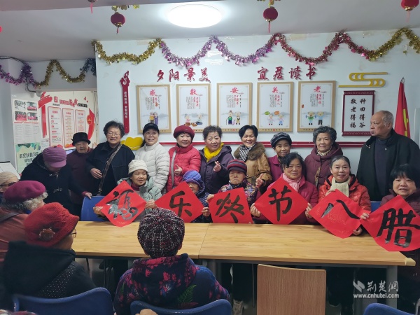 讀書社區(qū)老人歡慶臘八。 通訊員供圖