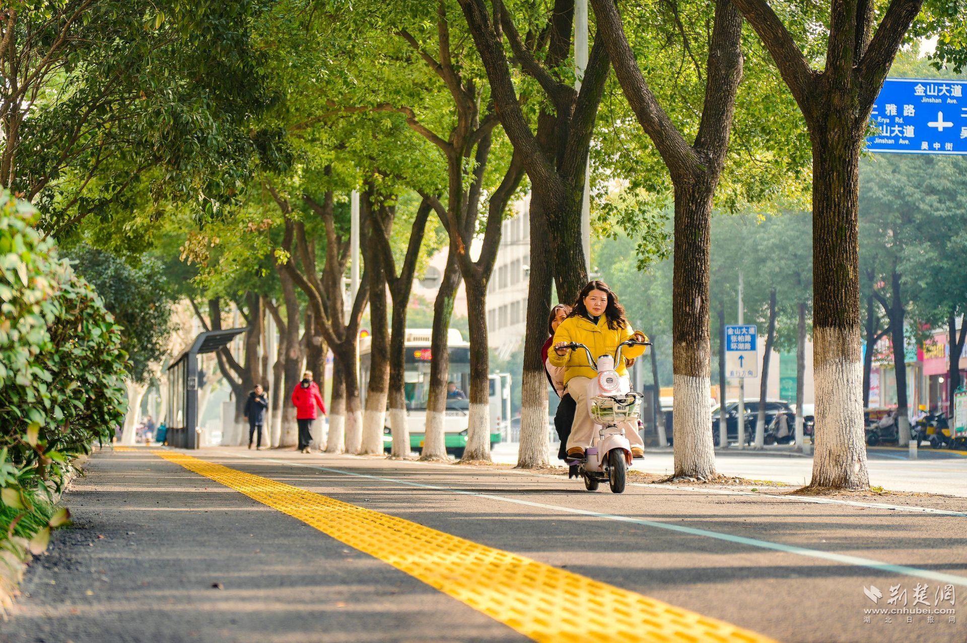 另一個(gè)明顯變化是,人行道旁多出了一條清晰的非機(jī)動車道。過去,吳中街沒有專門的非機(jī)動車道,人車混行存在隱患?,F(xiàn)在,“人非共面”的模式讓騎行與步行各自有序,盲道也同步更新,安全系數(shù)大幅提升。