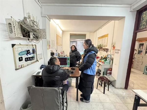 網格員與商戶親切交流,了解經營情況和春節(jié)安排。通訊員供圖