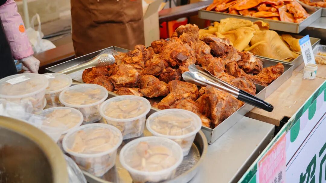 作為活動(dòng)的重要組成部分,特色年貨市集“滿倉(cāng)吉市”匯集了滿滿的煙火氣與本土特色。黃陂三鮮、鴨子煲、清湯鵝等地道美食香氣四溢,喚醒味蕾記憶。本地農(nóng)產(chǎn)品等特色攤位也一字排開(kāi),好不熱鬧。朝陽(yáng)村的豆絲攤位前早早排起了長(zhǎng)隊(duì)。朝陽(yáng)村黨支部書(shū)記、村委會(huì)主任熊偉介紹:“今天我們準(zhǔn)備了200斤米漿,現(xiàn)場(chǎng)制作近千張豆絲免費(fèi)供游客品嘗,既讓大家嘗到家鄉(xiāng)味,也帶動(dòng)了村里油、土雞、糯米等農(nóng)副產(chǎn)品的銷(xiāo)售。”