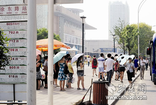 剛從襄陽出差回來的市民陳勇說,在烈日下拖著行李箱等公交,真是一件要命的事。6月中旬時,陳勇也是從外地出差回來,武漢一會兒傾盆大雨,轉瞬又烈日當頭,“聽說漢口站每天有3萬多出站旅客,就這樣被雨淋日曬”。