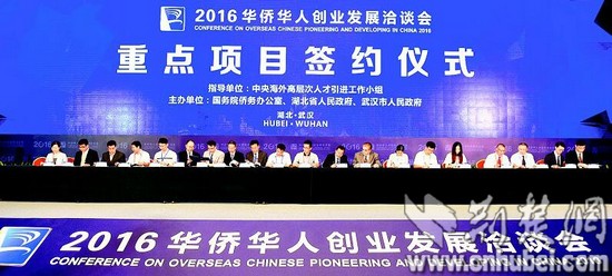 湖北日?qǐng)?bào)訊(記者周呈思)昨日上午,在2016華僑華人創(chuàng)業(yè)發(fā)展洽談會(huì)重點(diǎn)項(xiàng)目簽約儀式上,數(shù)十位中外簽約代表分三組上臺(tái),集中簽約29個(gè)項(xiàng)目,包括10個(gè)人才項(xiàng)目、19個(gè)投資項(xiàng)目,其中投資過(guò)億元的項(xiàng)目達(dá)18個(gè)。