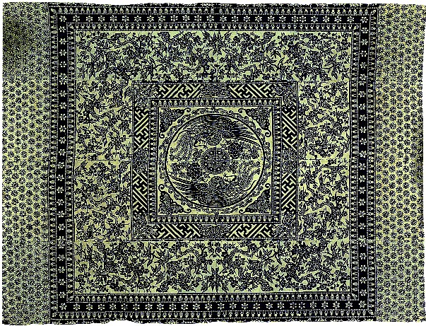 藍(lán)印花布遍及湖北全省,尤以天門(mén)藍(lán)印花布最負(fù)盛名。其特點(diǎn):1、藍(lán)與白的選擇,藍(lán)白兩色并非吉祥色,然而經(jīng)過(guò)藝人們的巧妙的藝術(shù)處理,使人感到清新明快;2、虛與實(shí)的結(jié)合:以點(diǎn)組成線(xiàn),以線(xiàn)組成面,若合若離,似為一體,實(shí)又分離。