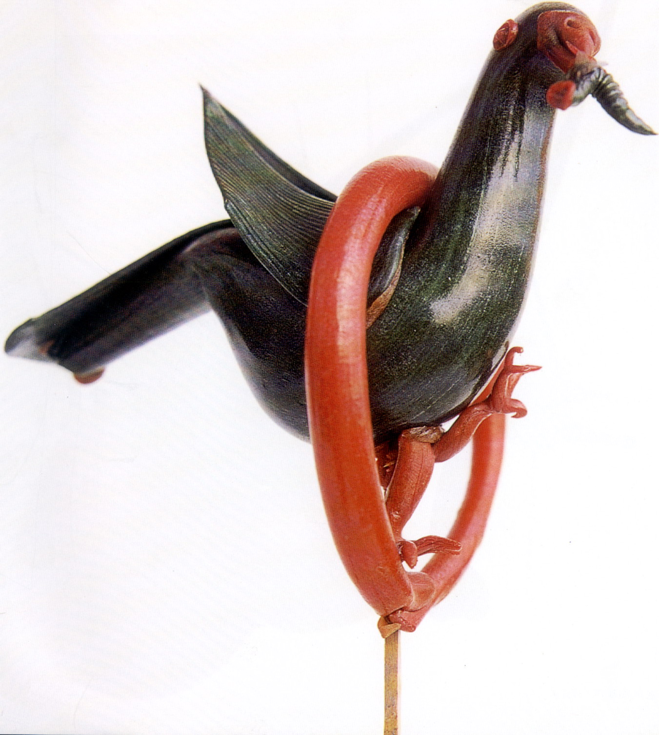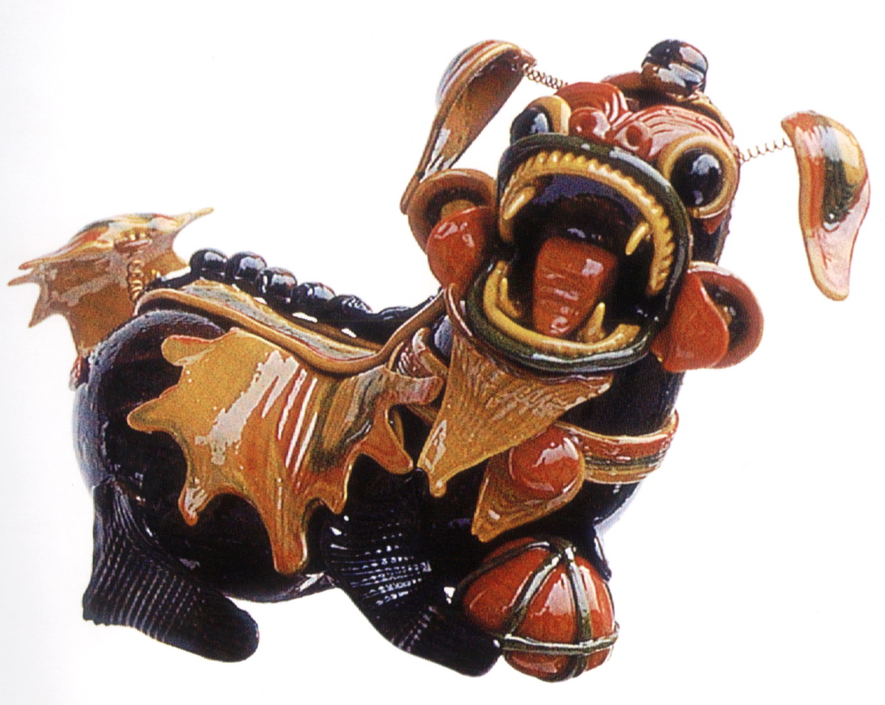 糖塑,俗稱吹糖,在湖北遍及全省,尤以天門最為突出。糖塑之所以贏得人們的喜愛,是因?yàn)樗?dú)具特色:1、原料可塑性強(qiáng):麥芽糖是糖塑的主要原料,加熱后變軟,比面塑更具可塑性,既可吹成薄而亮的各類造型,又可拉成粗細(xì)不同的糖絲。捏成不同形狀的配件,易粘且牢固;2、造型神形兼?zhèn)洌禾撬艿募妓囍饕Ψ蛟凇按怠鄙,一塊糖坯在藝人手中,邊吹邊捏,再通過搓、壓、挑、剪等手段,加上輔助的小鐵絲,少則幾分鐘,多則半小時,一件作品就完成了;3、色彩和諧醒目:麥芽糖加溫變軟加入紅、綠、黃、黑四種色素,根據(jù)需要又可調(diào)和成數(shù)十種復(fù)色,色彩響亮和諧;4、肌理變化豐富是糖塑獨(dú)具的特點(diǎn):在糖塑中,附件變化萬千的肌理又與主體吹成光滑的表面形成鮮明的對比,顯得更加豐富耐看;5、“活”的部件是糖塑的又一特點(diǎn):有的部件裝上自制的鋼絲彈簧,一經(jīng)拿在手中,部件都“活”起來了,更具生氣。